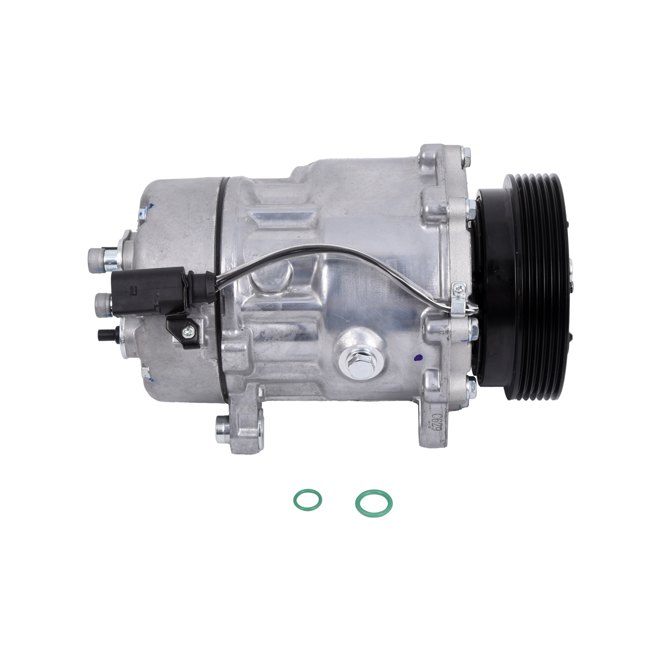брой на каналите: 6брой на щепселните контакти: 2-щифтенВходящ отвор Ø: 14,7mmИзходящ отвор Ø: 11,9mmколичество масло за напълване: 145милилитъркомпресорно масло: PAG 46охлаждащо вещество: R 134aработен обем компресор: 155cm³работно напрежение: 12волтРемъчна шайба Ø: 119mm