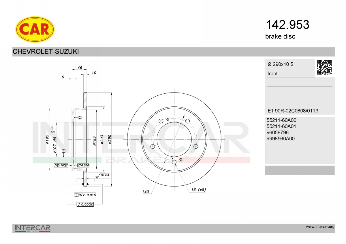 брой на вратите: 3брой на дупките: 5вид на спирачния диск: плътенвисочина: 46mmвъншен диаметър: 290mmдебелина на спирачния диск: 10mmДиаметър на кръговата стъпка Ø: 140mmмин. дебелина: 8mmповърхност: боядисанстрана на монтаж: предна осцентриращ диаметър: 107mm