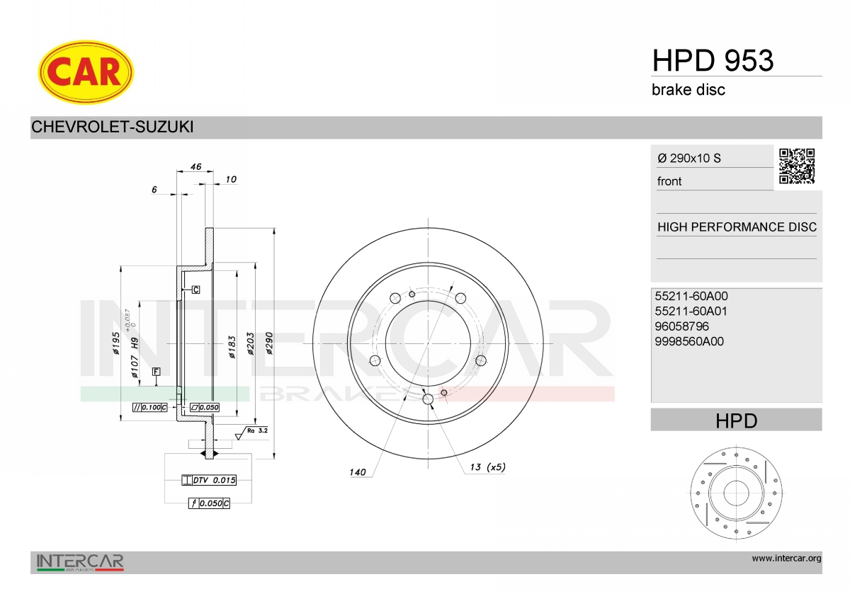 джанта: 5-дупкиброй/разположение на дупките: 7/5вид на спирачния диск: плътенвисочина: 46mmвъншен диаметър: 290mmдебелина на спирачния диск: 10mmконтролен знак за преглед: ECE R90 APPROVEDДиаметър на кръговата стъпка Ø: 140mmмин. дебелина: 8mmповърхност: с покритиестрана на монтаж: предна остегло: 4,45kgцентриращ диаметър: 107mm