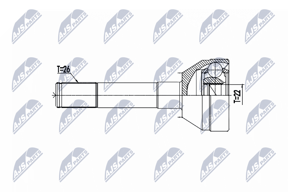 вид на шарнира: сферично каре (за предаване на постоянно движение)външни зъби от страна на колелото: 26вътрешни зъби от страната на колелото: 19диам. на гарн.: 44mmдължина: 115mmмярка на резбата: M1страна на монтаж: от страната на колелото