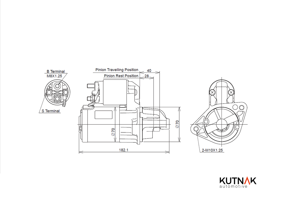 брой на дупките за закрепване: 2брой на зъбите: 8брой на резбовите дупки: 2Фланец Ø: 70mmнапрежение: 12волтклема: Pin "30" M8 B+клема: Pin "50" 6.4mm Plugстартова мощност: 1киловатпосока на въртене: въртене по посока на часовниковата стрелка