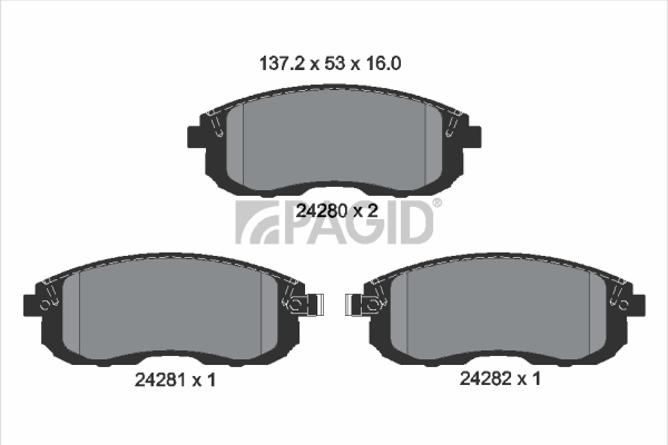номер на шаси (VIN): JSAстрана на монтаж: предна осстрана на производство на автомобила: 5WVA-номер: 24280височина: 53mmвисочина на опаковка: 8,4смдебелина: 16mmДължина на опаковка: 15,2смконтактен датчик за износване: с акустично предупреждение за износванеспирачна система: Hitachiтегло: 1,6kgширина: 137,2mmопаковачна широчина: 8,8см