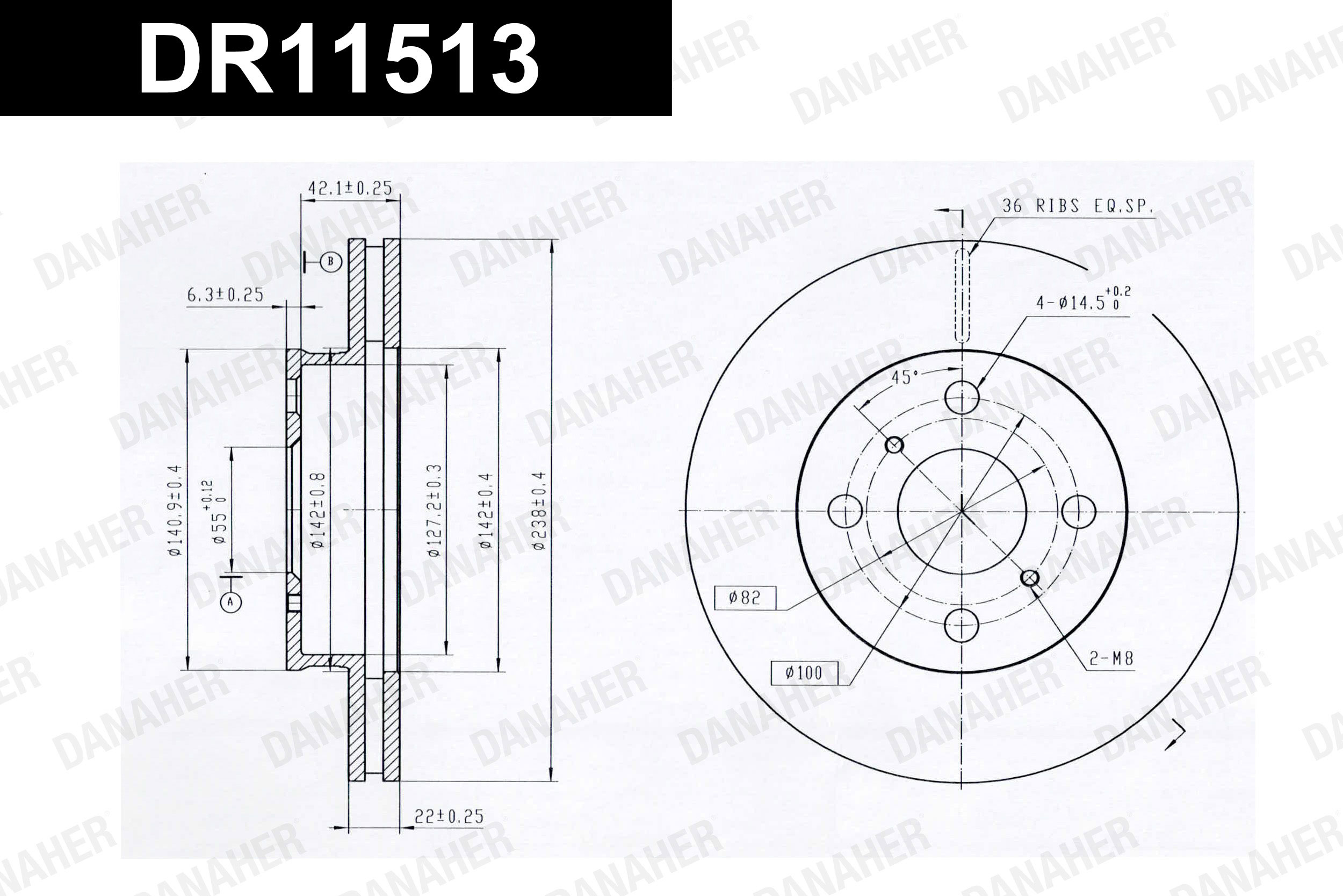 брой на дупките: 4вид на спирачния диск: перфориранвид на спирачния диск: плътенвисочина: 36,3mmвъншен диаметър: 265,9mmвътрешен диаметър: 128mmдебелина на спирачния диск: 9mmДиаметър на кръговата стъпка Ø: 100mmмин. дебелина: 8mmмярка на резбата: 14,5повърхност: галванизиранстрана на монтаж: задна остегло: 3,4kgцентриращ диаметър: 55mm