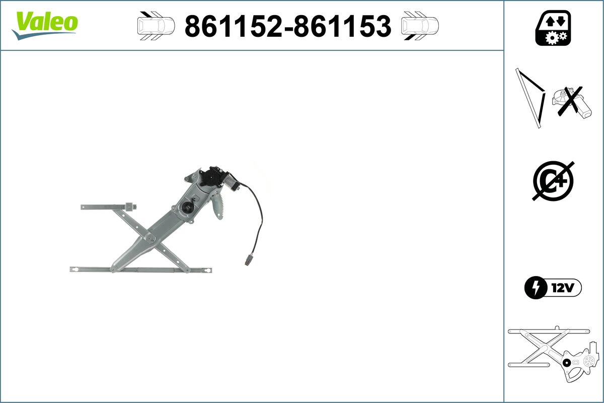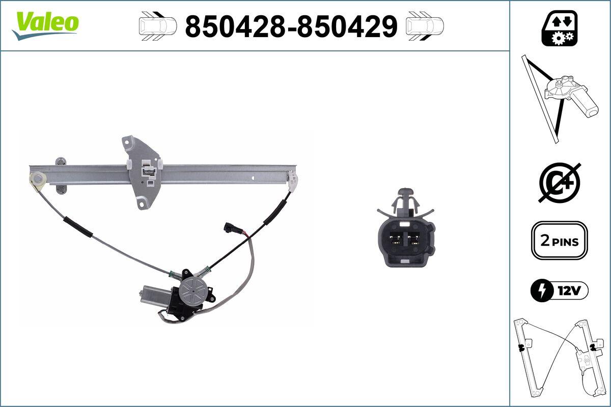брой на щепселните контакти: 2-щифтенвид на експлоатация: електрическивключваща функция: без функция комфортдопълващ артикул /допълваща информация: с електродвигателномер на артикул в чифта: 850427обурудване на автомобила: за МПС без автоматични ел. прозорцистрана на монтаж: отпред отлявостъклоподемник: повдигач за прозорци със спираловиден кабелтегло: 2,78kg