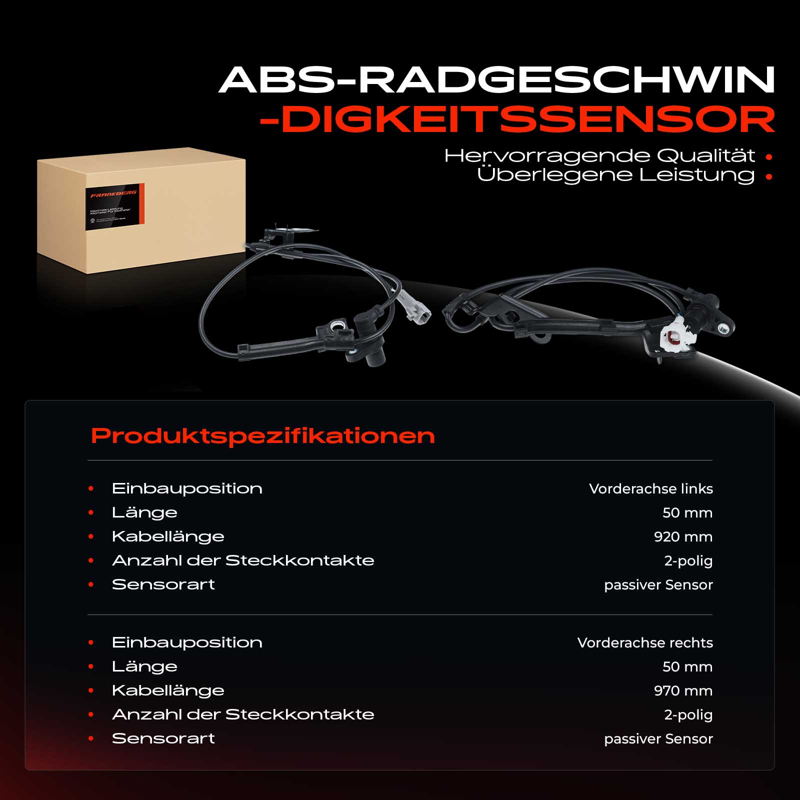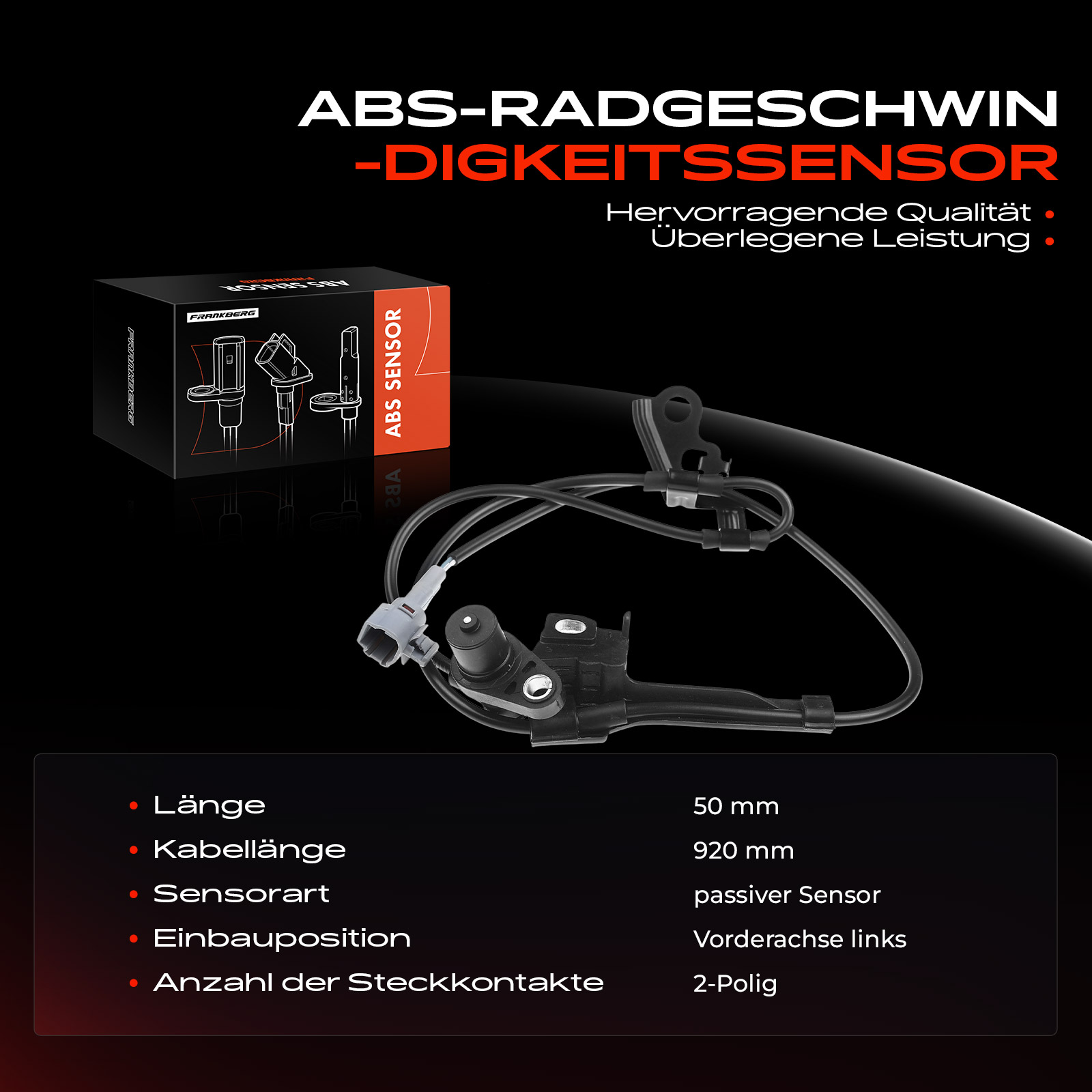 брой на щепселните контакти: 2-щифтенвид на датчика: пасивен сензордължина на кабела: 1005mmстрана на монтаж: на предната ос отдясно