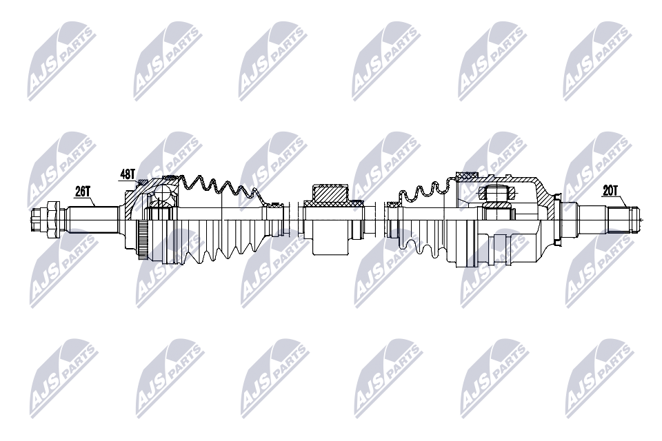 брой на зъбите: 48външни зъби от страна на колелото: 26външни зъби откъм диференциал: 20дължина: 648mmстрана на монтаж: на предната ос отляво