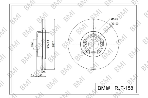 страна на монтаж: предна осброй на дупките: 2брой на дупките: 5вид на спирачния диск: с вътрешно вентилираневисочина: 49,4mmвъншен диаметър: 277mmдебелина на спирачния диск: 26,1mmДиаметър на кръговата стъпка Ø: 100mmмин. дебелина: 24mmповърхност: с покритиецентриращ диаметър: 55mm