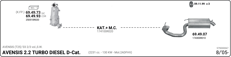 година на производство от: 200607код на двигателя: 2ADFHVстепен на стандарта за отработени газове: E4