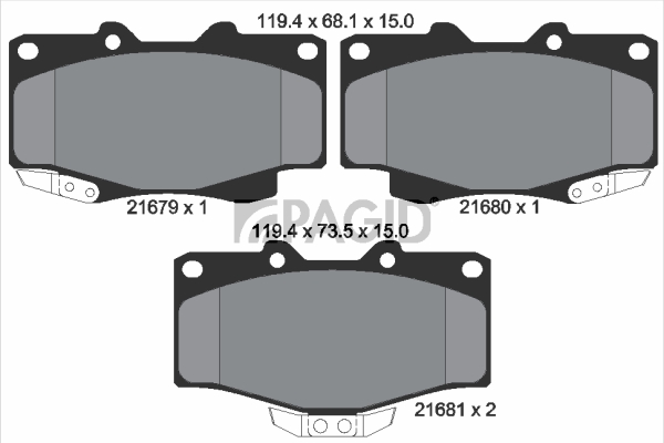 Брой индикатори за износване: 2за осброй на покритията: 4височина: 68,1mmвисочина 1: 68mmвисочина 2: 73,5mmдебелина: 15mmконтактен датчик за износване: с акустично предупреждение за износванеконтролен знак за преглед: ECE R90 APPROVEDстрана на монтаж: предна осширина: 119,2mm