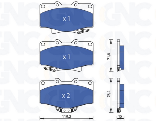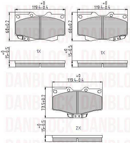 страна на монтаж: предна осБрой индикатори за износване: 4за освисочина 1: 73,5mmвисочина 2: 68mmдебелина: 15mmспирачна система: SUMITOMOширина: 119,2mm