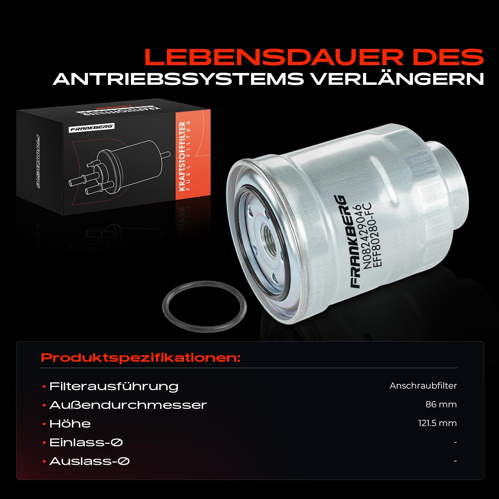 вид на горивото: бензинвисочина: 164mmвъншен диаметър: 62mmВходящ отвор Ø: 8mmИзходящ отвор Ø: 8mmизпълнение на филтъра: проточен филтър