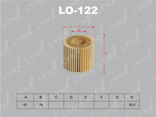височина: 56mmвъншен диаметър: 60mmвътрешен диаметър: 28mmизпълнение на филтъра: вложка на филтърматериал: хартия
