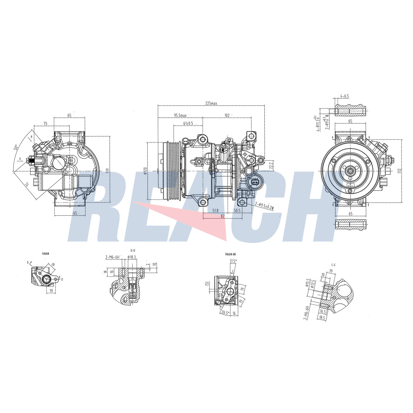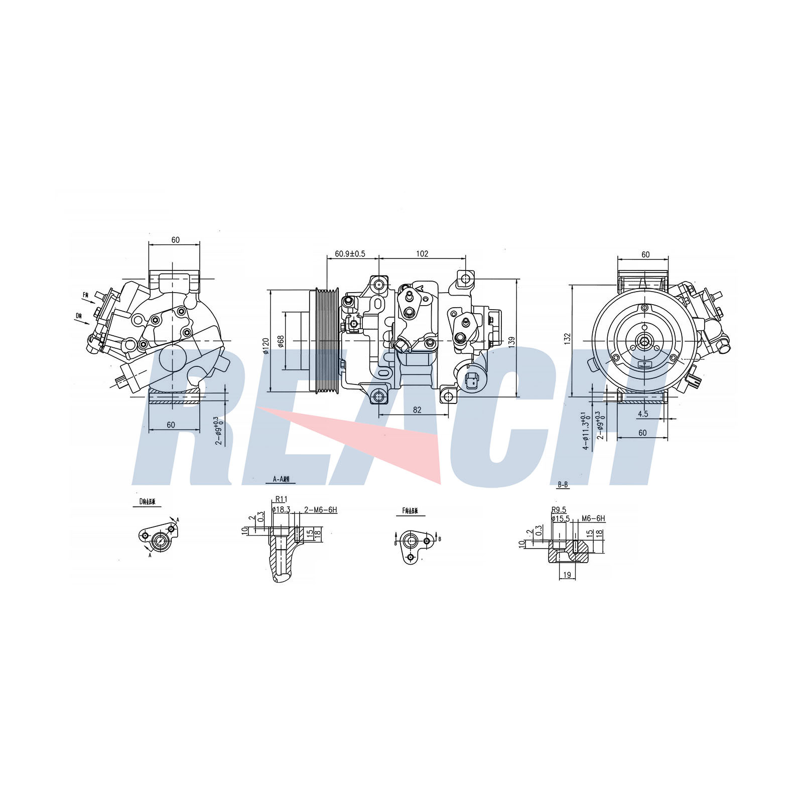 брой на дупките за закрепване: 4брой на ребрата: 6Входящ отвор Ø: 18,3mmИзходящ отвор Ø: 15,5mmколичество масло за напълване: 170милилитъркомпресорно масло: PAG 46Ремъчна шайба Ø: 119mm