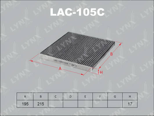 височина: 17mmдължина: 216mmизпълнение на филтъра: филтър с активен въгленколичество: 1тегло: 0,12kgширина: 196mm