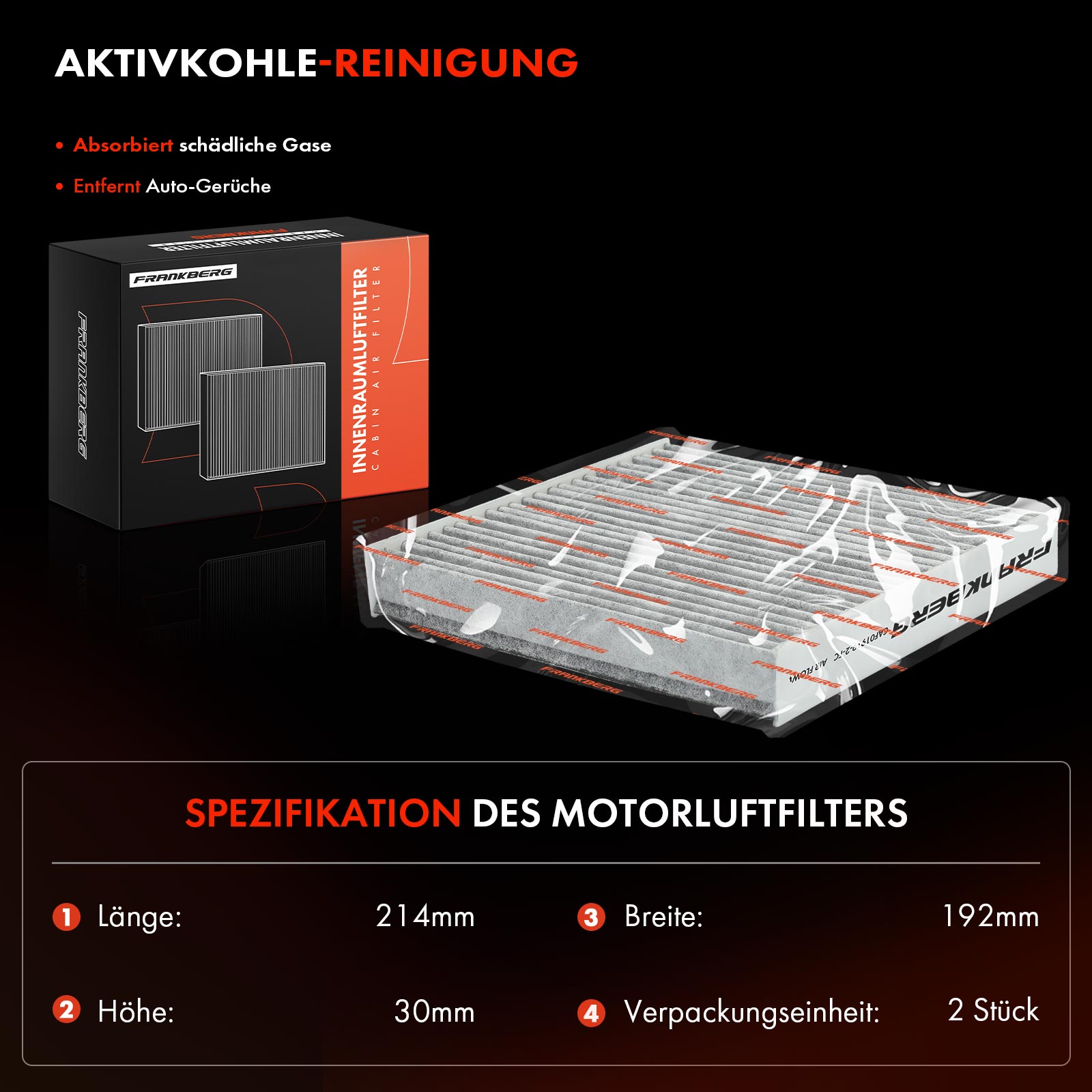 височина: 31mmдължина: 215mmизпълнение на филтъра: филтър с активен въгленколичество: 1тегло: 0,226kgширина: 193mm
