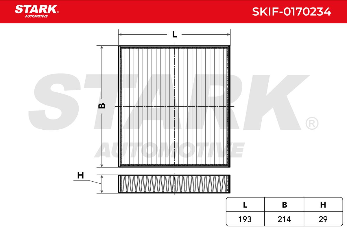 височина: 29mmдължина: 193mmизпълнение на филтъра: филтър с активен въгленширина: 215mm