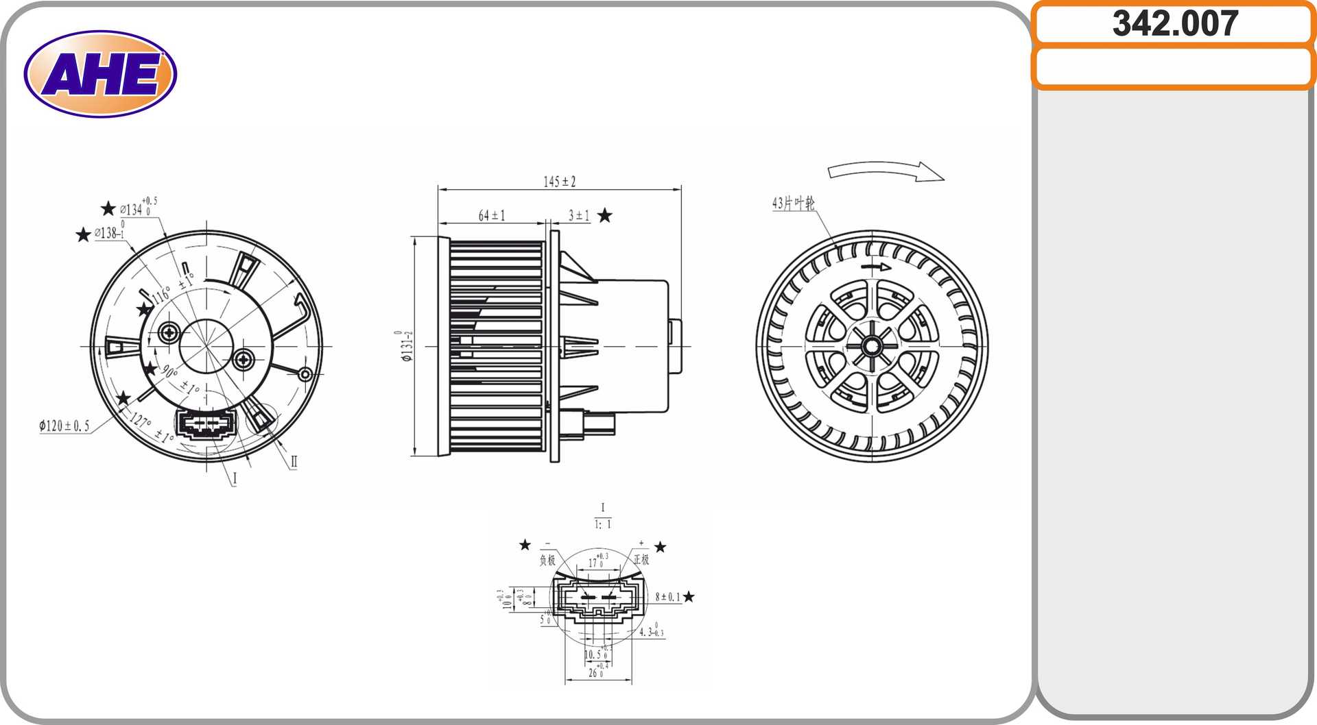 ляв/десен волан: 1брой на щепселните контакти: 2-щифтеннапрежение: 12волтмощност: 150Wпосока на въртене: въртене по посока на часовниковата стрелка