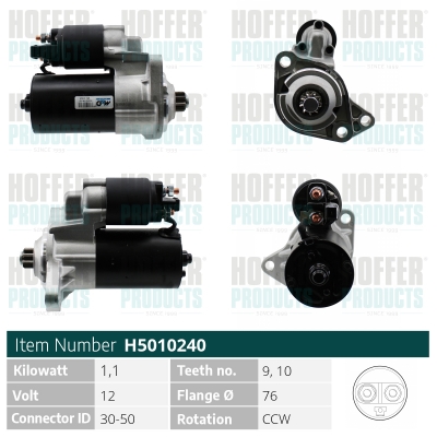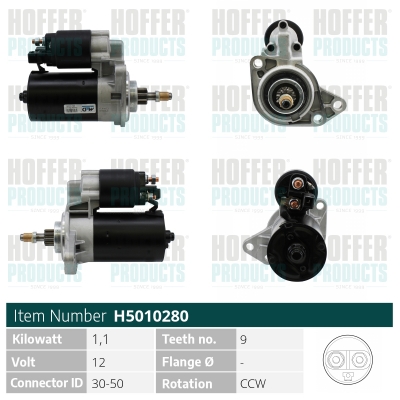 брой на зъбите: 9напрежение: 12волтстартова мощност: 1,2киловатпосока на въртене: въртене по посока срещу часовниковата стрелка