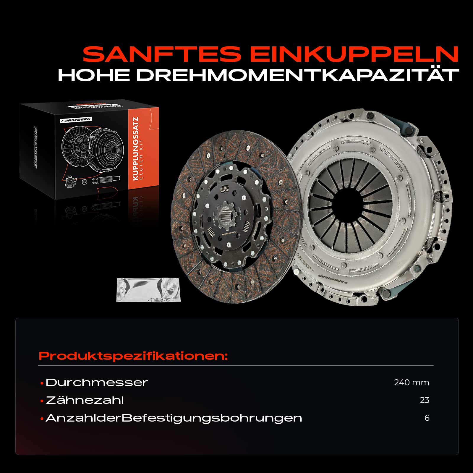 за производител на съединител: Sachsброй на зъбите: 23външен диаметър: 241mmдопълващ артикул /допълваща информация: със синтетична гресмногокомпонентен: двукомпонентен