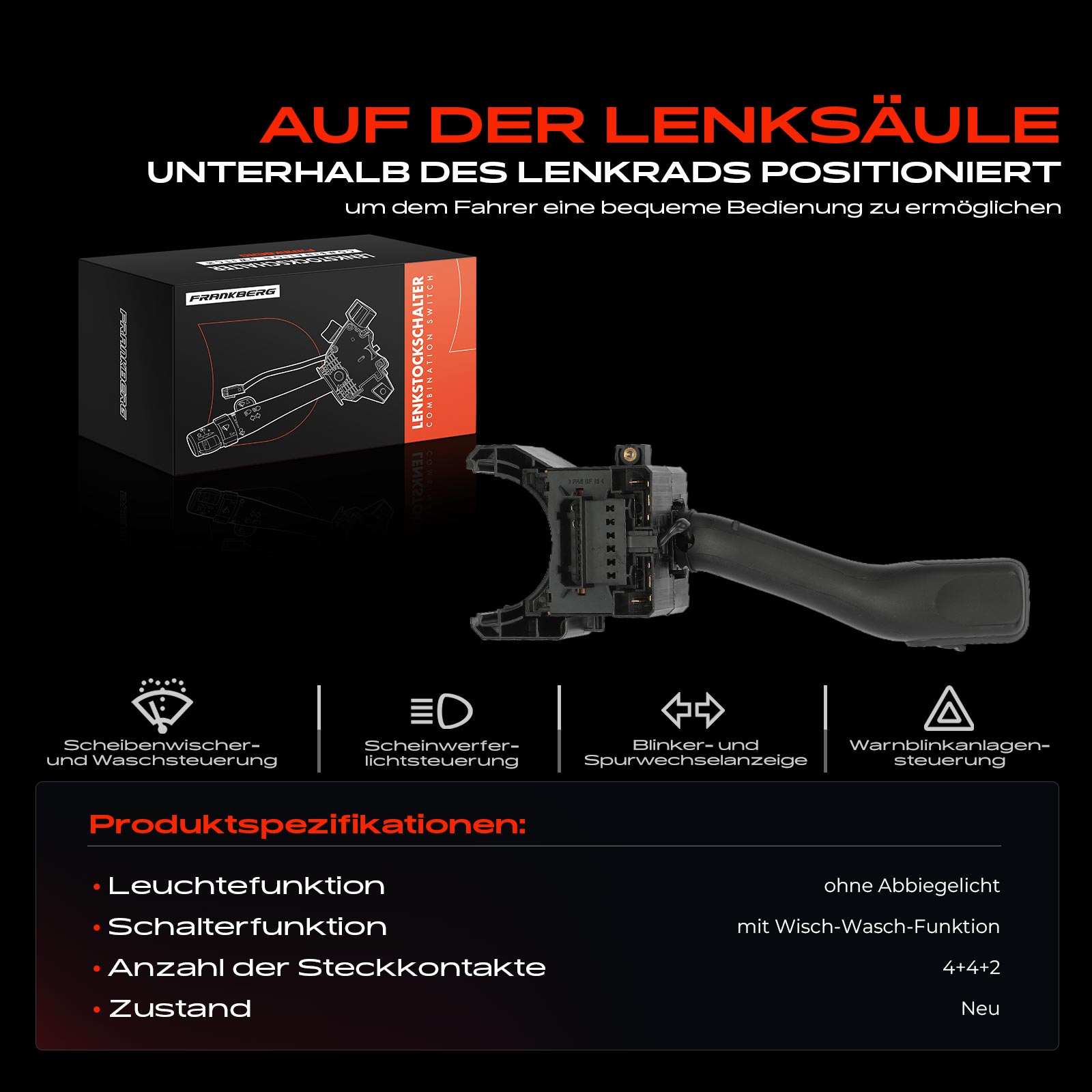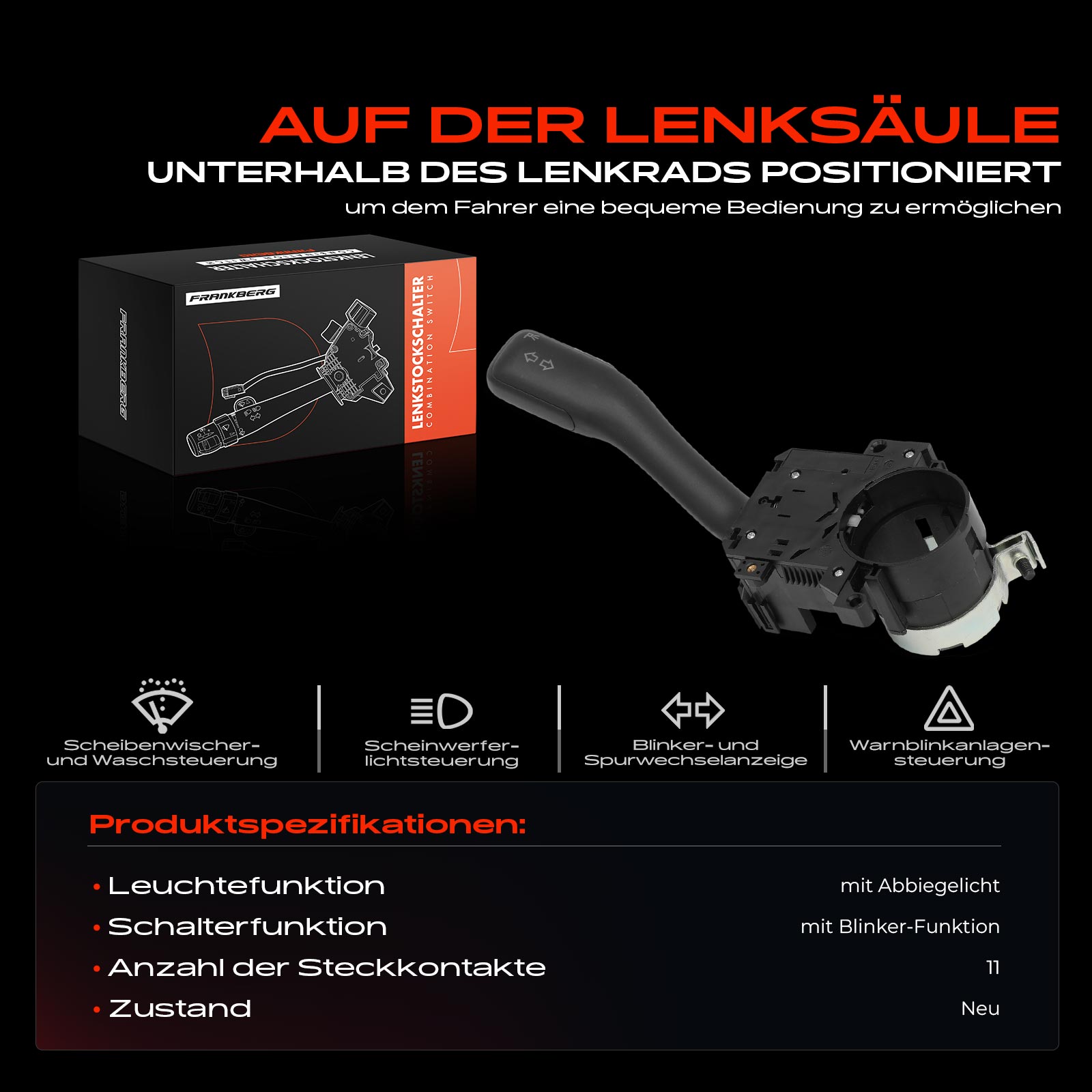 не за линия/вариант на оборудване на автомобила: Multifunktionlenkradобурудване на автомобила: 56брой на щепселните контакти: 11-щифтенвключваща функция: с асистент за дълги светлинивключваща функция: с функция паркинг светлинавключваща функция: с функция-мигачивключваща функция: със светлинен сигнализатор (светкавица)гаранция: 5 години гаранция или до 75 000kmцвят: черен