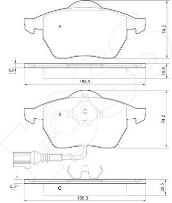 височина: 74,2mmдебелина: 19,5mmконтактен датчик за износване: вкл. контактен датчик за износванеограничение за производител: ATEспирачна система: ATEстрана на монтаж: предна осширина: 156,4mm