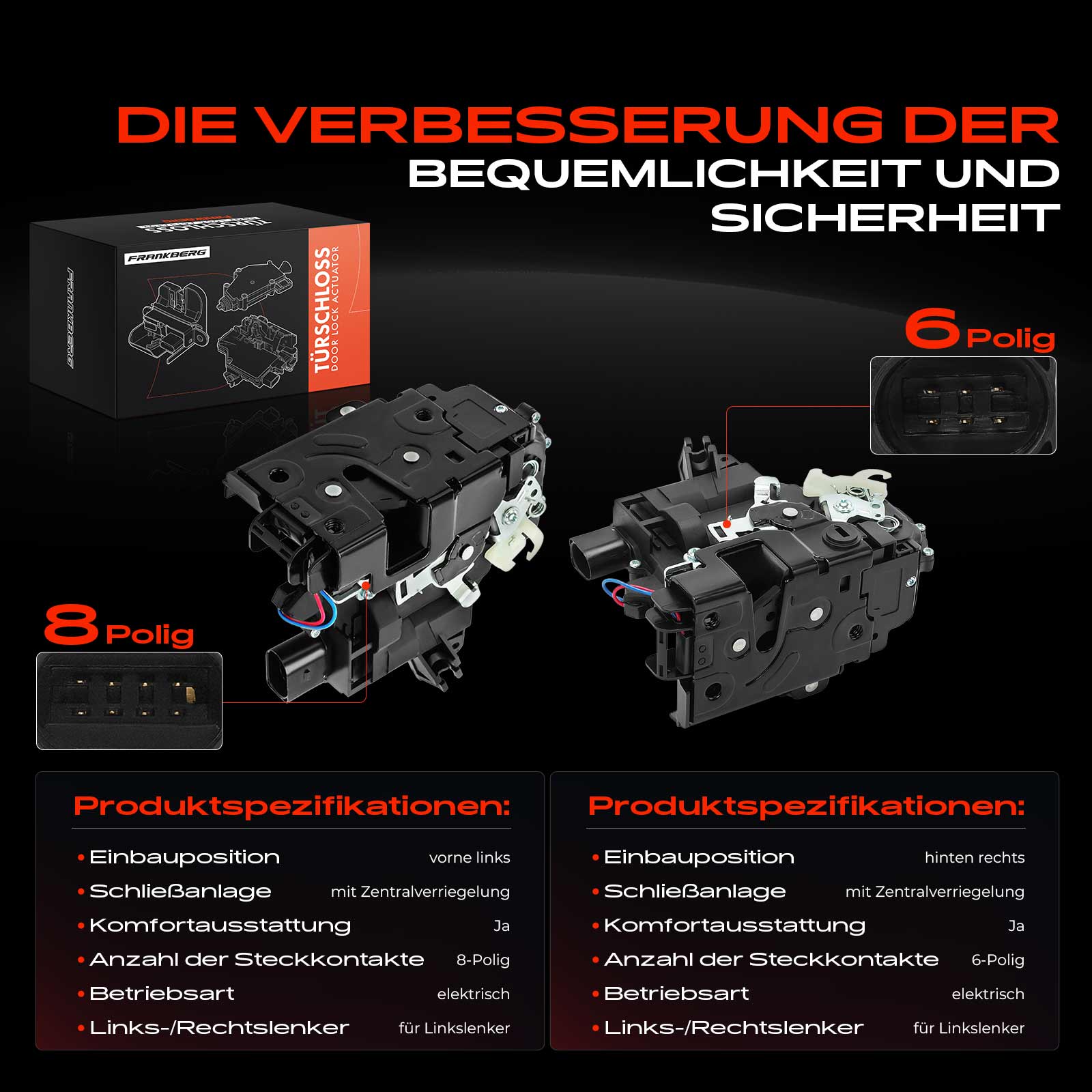 брой на щепселните контакти: 8-щифтензаключваща система: с централно заключванеляв/десен волан: за автомобили с ляв воланномер на артикул в чифта: 132-053-046страна на монтаж: отпред отляво