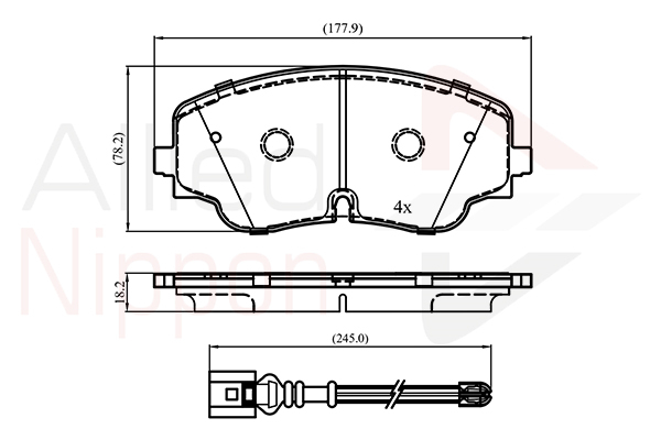 височина: 78,3mmдебелина: 18,2mmконструкция на ос: Frontконтактен датчик за износване: вкл. контактен датчик за износванестрана на монтаж: предна осширина: 178,1mm