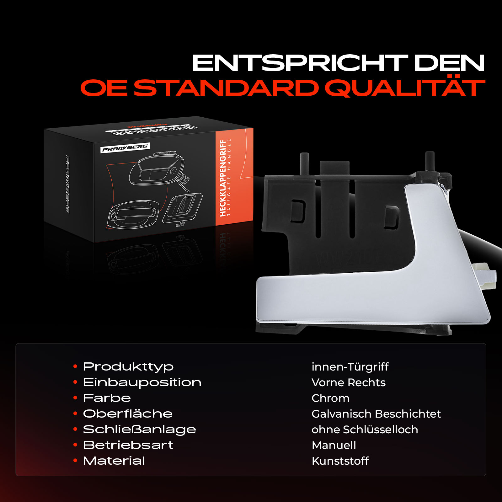 заключваща система: без отвор за ключматериал: пластмасаповърхност: галванизиранстрана на монтаж: отзад лявоцвят: хром
