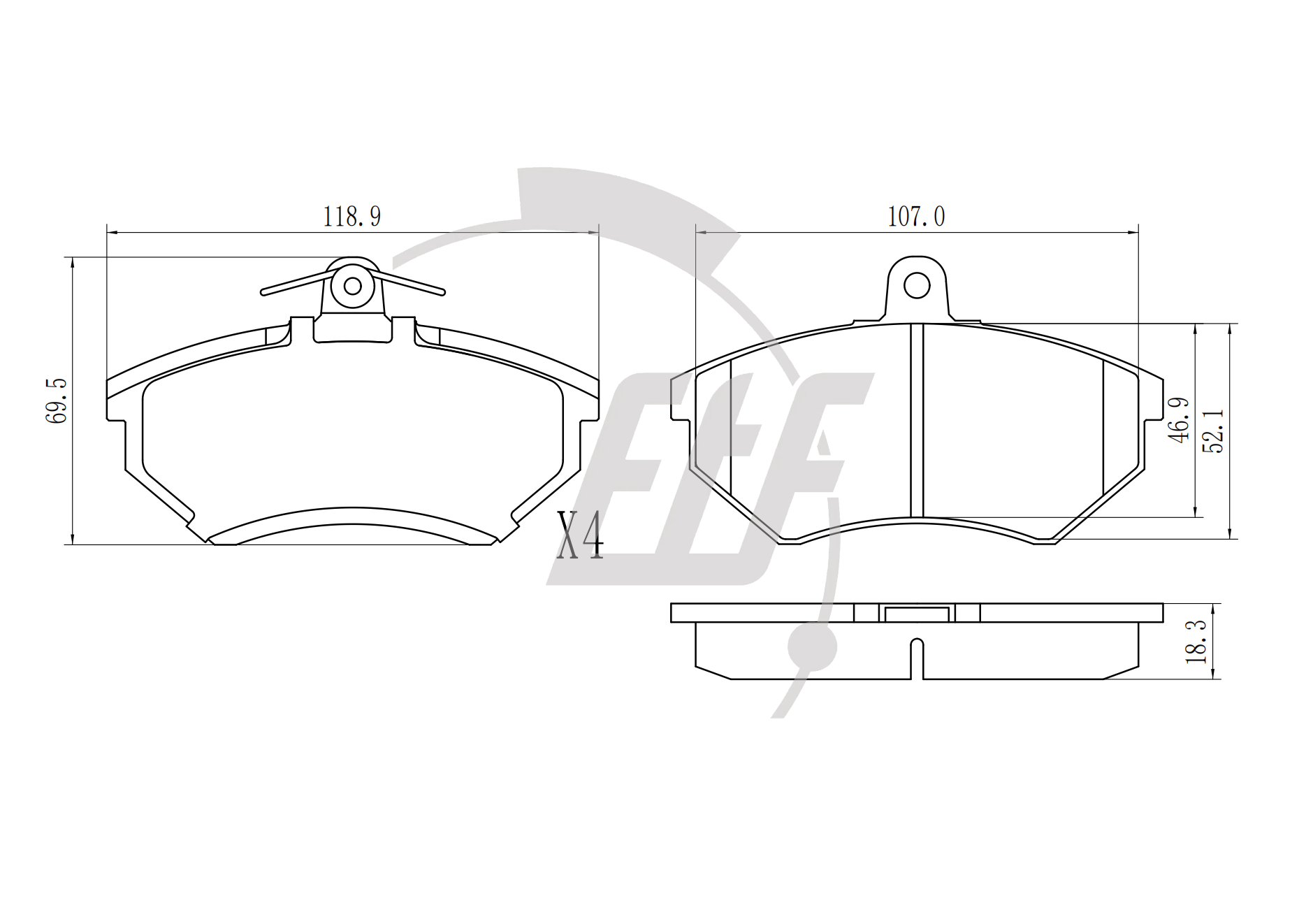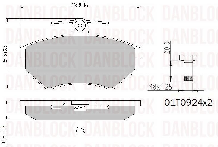 година на производство до: 199604година на производство от: 199310страна на монтаж: предна освисочина: 69,5mmдебелина: 19,3mmконтактен датчик за износване: без предупредителен контактен датчикконтролен знак за преглед: ECE R90спирачна система: Lucas / TRWширина: 119mm
