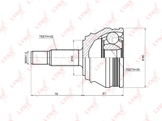 вид на шарнира: сферично каре (за предаване на постоянно движение)външен диаметър: 90mmвъншни зъби от страна на колелото: 22вътрешни зъби от страната на колелото: 30диам. на гарн.: 53mmстрана на монтаж: от страната на колелото
