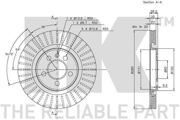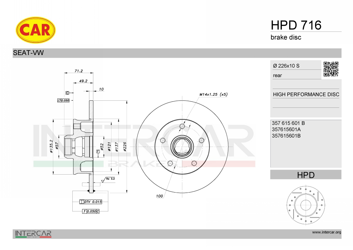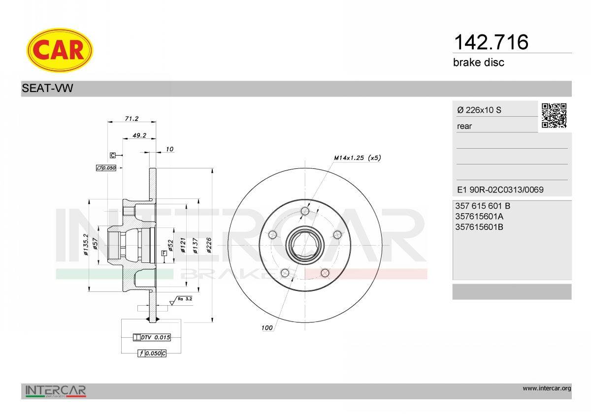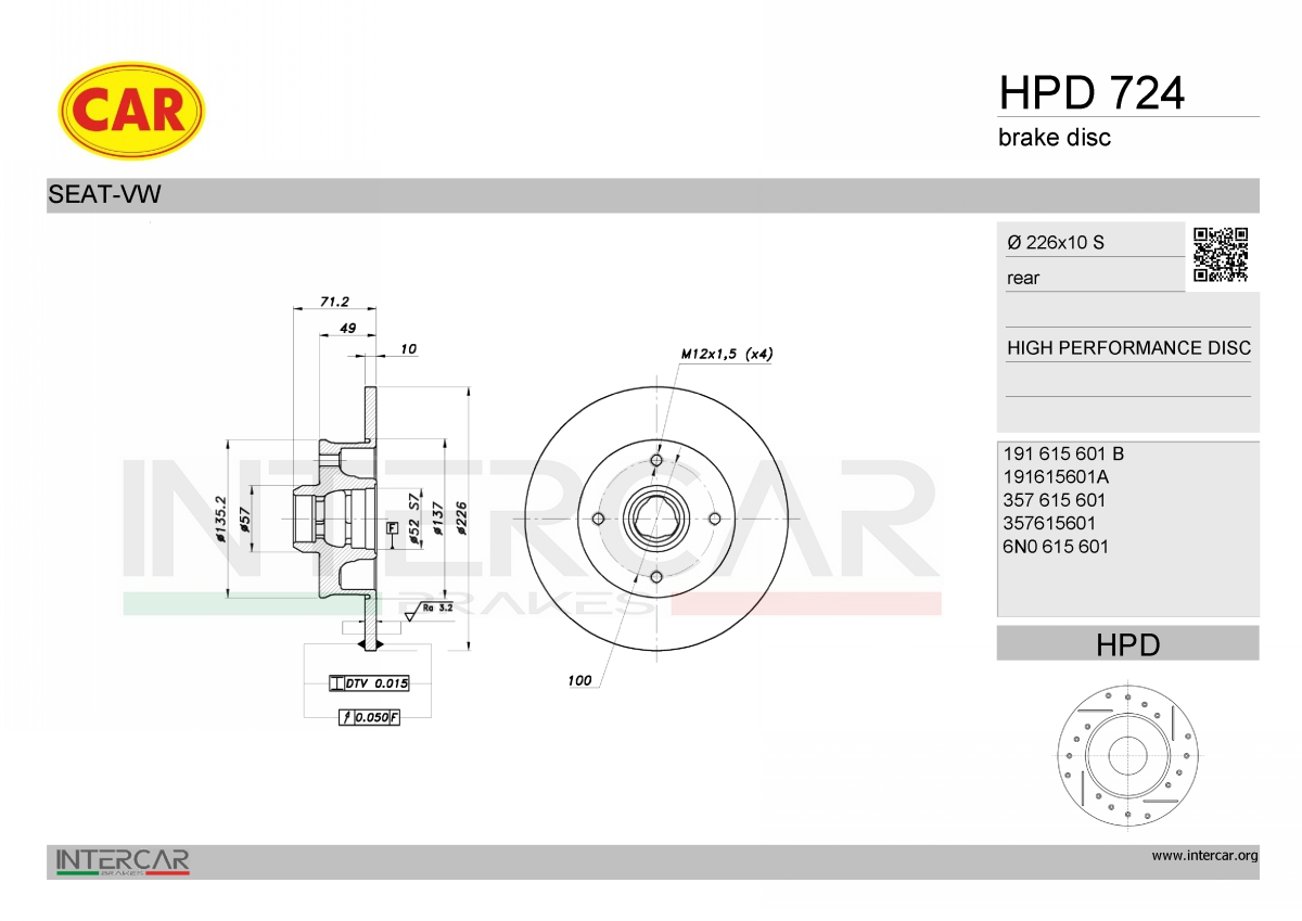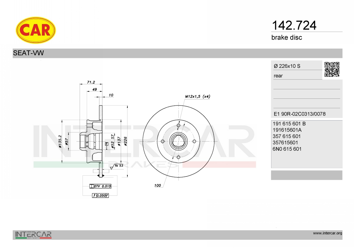 брой дупки на джанта: 4брой на дупките: 4вид на спирачния диск: плътенвисочина: 71,2mmвъншен диаметър: 226mmдебелина на спирачния диск: 10mmза OE-номер: 6N0615601мин. дебелина: 8mmповърхност: боядисанстрана на монтаж: задна ос