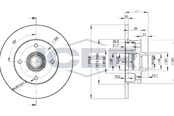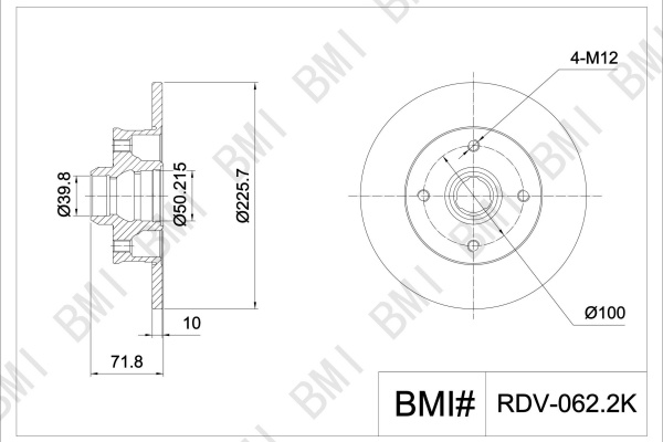 брой на дупките: 4вид на спирачния диск: плътенвисочина: 71,2mmвъншен диаметър: 226mmдебелина на спирачния диск: 10mmдоп. артикул/доп. инфо. 2: без колесен лагердоп. артикул/доп. инфо. 2: без сензорен пръстен за ABSДиаметър на кръговата стъпка Ø: 100mmмин. дебелина: 8mmмярка на резбата: M12x1,5страна на монтаж: задна осцентриращ диаметър: 39,8mm