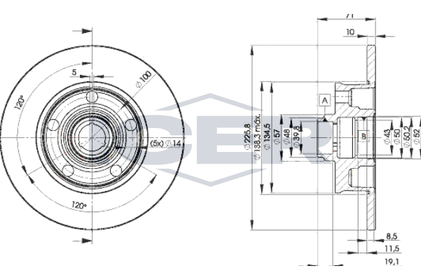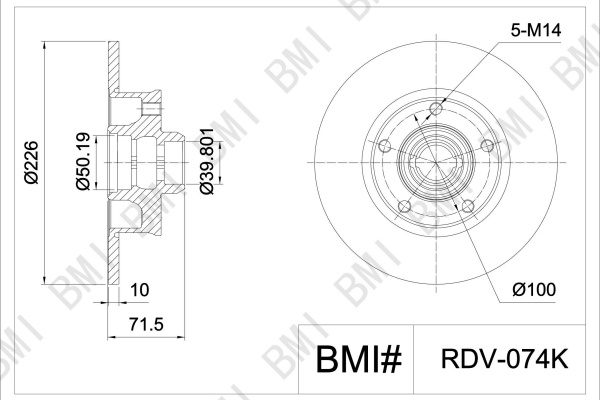 брой на дупките: 5вид на спирачния диск: плътенвисочина: 71,2mmвъншен диаметър: 226mmдебелина: 10mmдебелина на спирачния диск: 10mmмин. дебелина: 8mmстрана на монтаж: задна осцентриращ диаметър: 39,8mm