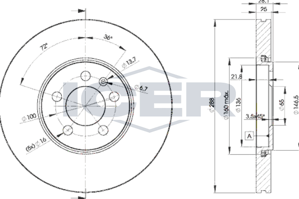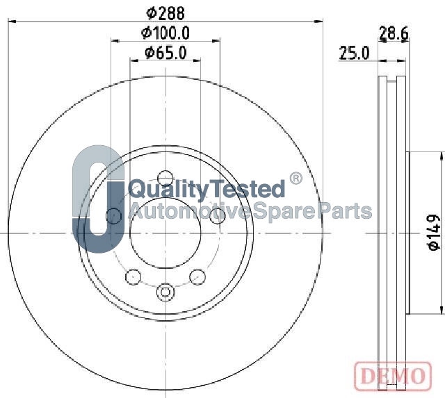 година на производство от: 199605страна на монтаж: предна осджанта: 5-дупкивид на спирачния диск: вентилиранвисочина: 28,5mmвъншен диаметър: 288mmдебелина на спирачния диск: 25mmГлавина Ø: 149mmДиаметър на кръговата стъпка Ø: 100mmмин. дебелина: 23mmцентриращ диаметър: 65mm