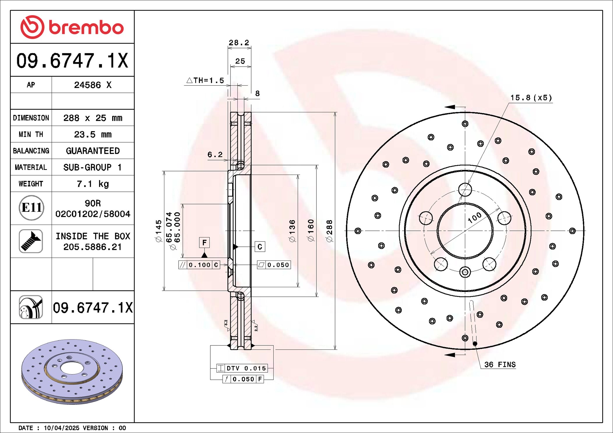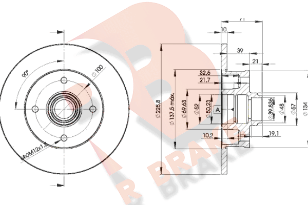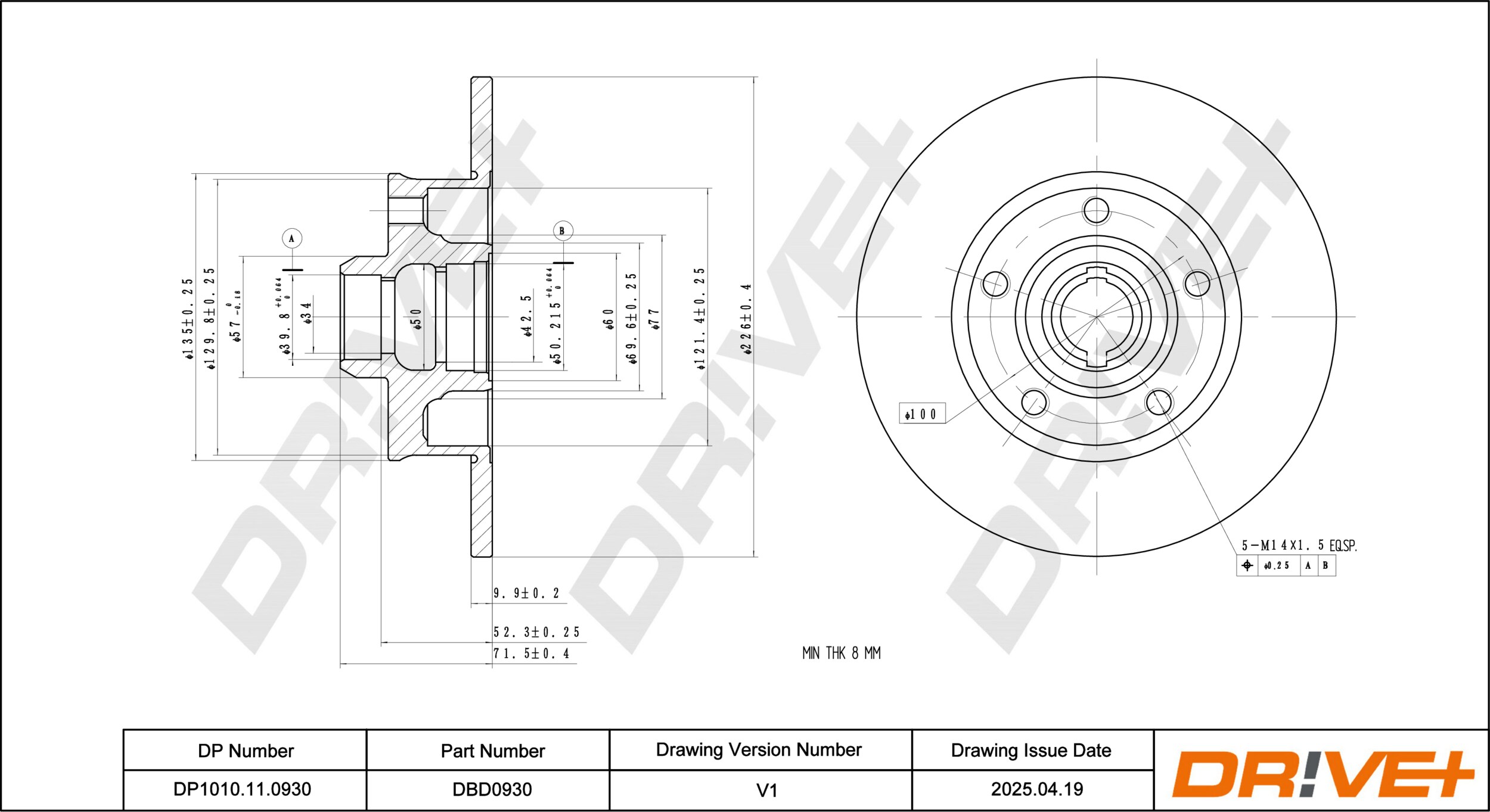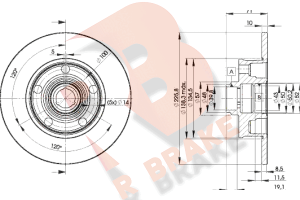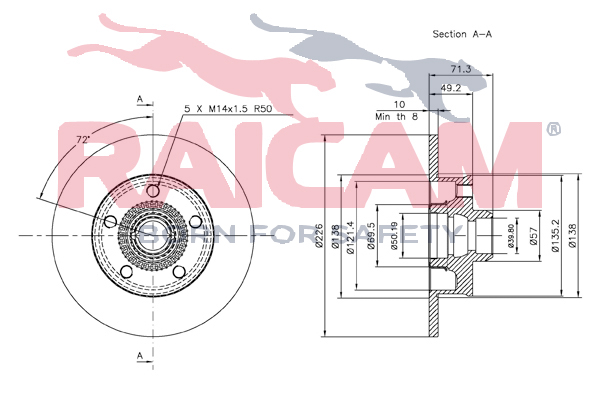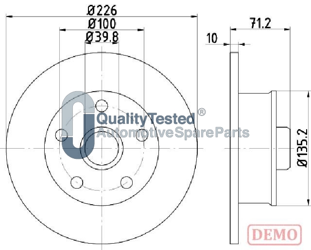 спирачна/динамика на движение: 1страна на монтаж: задна осджанта: 5-дупкивид на спирачния диск: плътенвисочина: 71,5mmвъншен диаметър: 226mmдебелина на спирачния диск: 10mmГлавина Ø: 135mmДиаметър на кръговата стъпка Ø: 100mmмин. дебелина: 8mmповърхност: с покритиецентриращ диаметър: 39,8mm