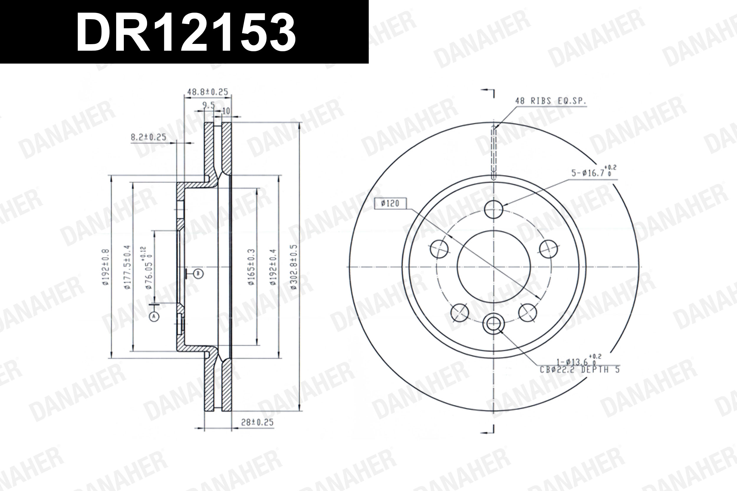 брой на дупките: 5вид на спирачния диск: вентилиранвисочина: 56,9mmвъншен диаметър: 303mmвътрешен диаметър: 165,2mmдебелина на спирачния диск: 28,0mmОтвор Ø: 16,6mmДиаметър на кръговата стъпка Ø: 120mmмин. дебелина: 26mmстрана на монтаж: предна осцентриращ диаметър: 76mm