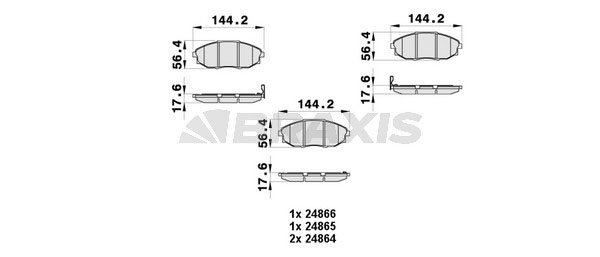 номер на шаси (VIN) до: 112278WVA-номер: 24864WVA-номер: 24865WVA-номер: 24866височина: 56mmдебелина: 17mmдължина: 144mmконструкция на спирачките: дискови спирачкиконтролен знак за преглед: ECE R90 APPROVEDстрана на монтаж: предна ос