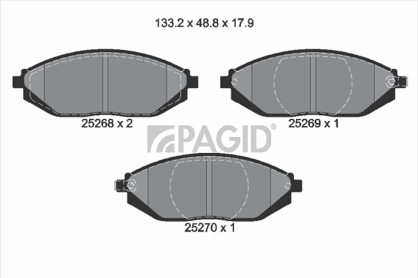 височина: 48,8mmдебелина: 17,2mmконтактен датчик за износване: не е за подготвен за предупредителен датчик за износванестрана на монтаж: предна осширина: 133mm