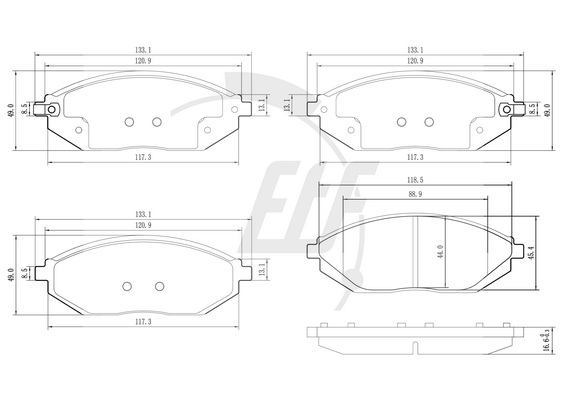 страна на монтаж: предна осдебелина: 16,8mmдължина: 133mmконтактен датчик за износване: с акустично предупреждение за износванеширина: 49mm