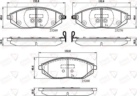 страна на монтаж: предна осWVA-номер: 25268WVA-номер: 25269WVA-номер: 25270дебелина: 18mmдължина: 132,8mmконтактен датчик за износване: с акустично предупреждение за износванеспирачна система: Akebonoширина: 48,6mm