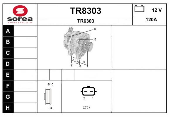 брой на ребрата: 4допълващ артикул /допълваща информация: с вграден регулаторнапрежение: 12волтзаряден ток на генератор: 120Аконтакт/клема: без връзка за оборотомерпосока на въртене: въртене по посока на часовниковата стрелкаремъчни шайби: с ремъчна шайбатехнически информационен номер: C79