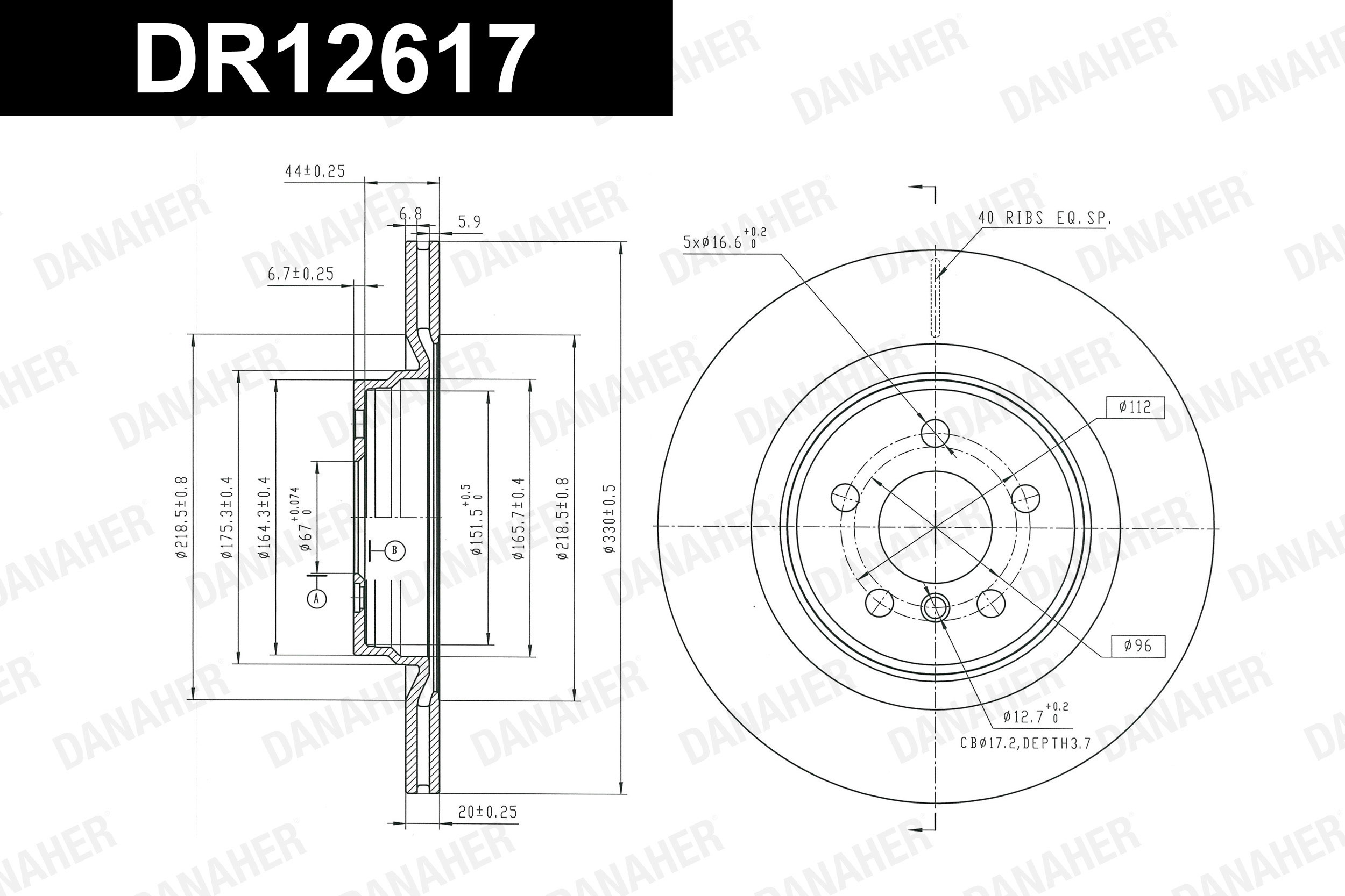 брой на дупките: 5вид на спирачния диск: вентилиранвисочина: 45,2mmвъншен диаметър: 307mmдебелина на спирачния диск: 24mmОтвор Ø 1: 16,6mmОтвор Ø 2: 12,7mmДиаметър на кръговата стъпка Ø: 112mmмин. дебелина: 22,4mmповърхност: с покритиестрана на монтаж: предна осцентриращ диаметър: 67mm