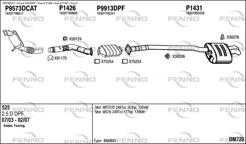 брой на вратите: 4вид задвижване: 2вид на катализатора: 24година на производство до: 200703код на двигателя: M57D25тип на трансмисията: 23тип на трансмисията: 7