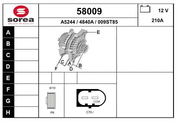 дължина 1: 58,00mmдължина 2: 28,00mmДължина 3: 75,50mmнапрежение: 12волтзаряден ток на генератор: 210Аремъчни шайби: с ремъчна шайба
