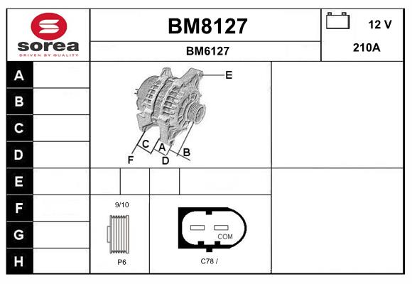 брой на ребрата: 6Отвор Ø 1: 10mmОтвор Ø 2: 10mmнапрежение: 12волтзаряден ток на генератор: 210Аклема: COM/LIN2клема: M8 B+ремъчни шайби: с многоремъчна шайбаРемъчна шайба Ø: 49mm
