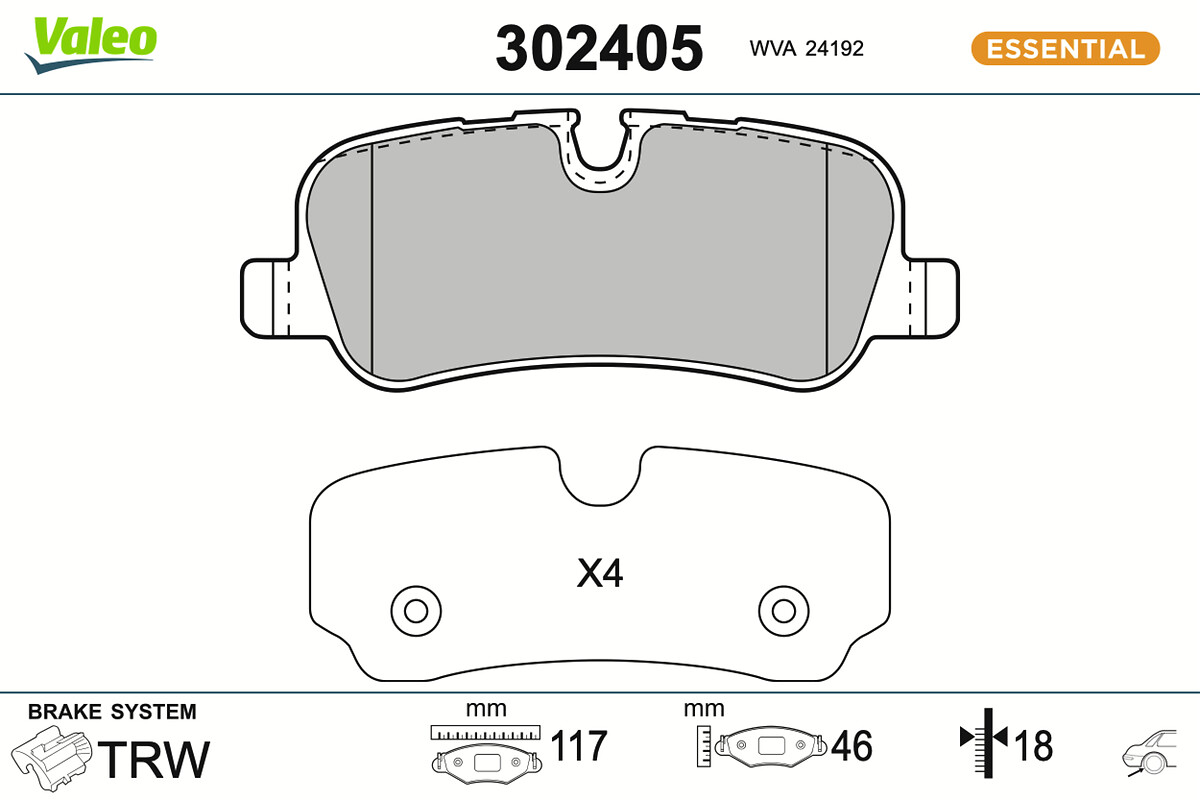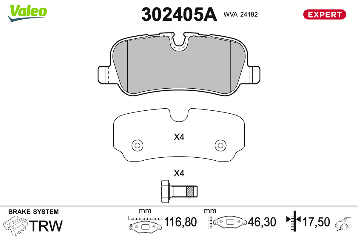 WVA-номер: 24192височина: 46,5mmдебелина: 17,1mmдължина: 116,5mmза OE-номер: LR012993спирачна система: TRWстрана на монтаж: задна ос