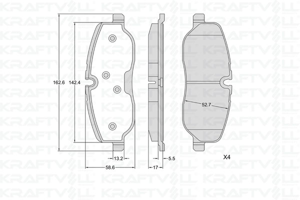 автомобил със специален режим на движение: 51височина: 58,7mmдебелина: 18,2mmконтактен датчик за износване: подготвен за предупредителен датчик за износванеспирачна система: TRWстрана на монтаж: предна остегло: 2,27kgширина: 162,6mm