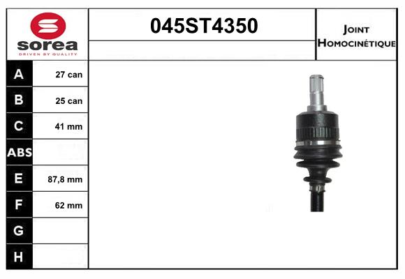 вид на шарнира: сферично каре (за предаване на постоянно движение)външни зъби откъм диференциал: 27вътрешни зъби от страната на дифер. свързване с свързв.вал: 25диам. на гарн.: 41mmстрана на монтаж: на предната ос отлявострана на монтаж: от страната на трансмисията