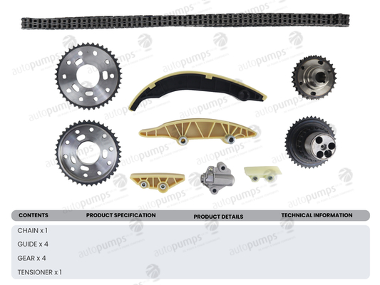 брой звена на верига: 180допълващ артикул /допълваща информация: със зъбни колелаизпълнение /бид/ на веригата: зъбна веригауправление на клапана: за двигател с променливо газоразпределение