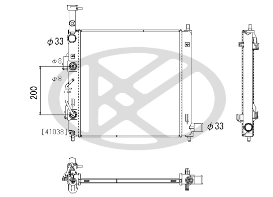 тип на трансмисията: 6Входящ отвор Ø: 33mmдълбочина на мрежа: 16mmдължина на мрежа: 410mmизпълнение на охладител: запоени охлацдащи ламелиИзходящ отвор Ø: 33mmматериал на ламелите на радиатора: алуминийматериал на резервоар (охладител): пластмасаширина на мрежа: 408mm
